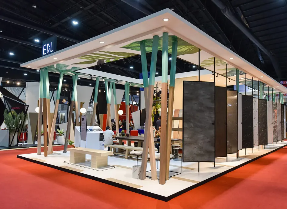 مواد با کیفیت و پایدار مانند چوب، فلز و شیشه برای ساخت غرفه انتخاب شد. همچنین، تجهیزات مدرن برای نورپردازی و نمایش دیجیتال تهیه شد.